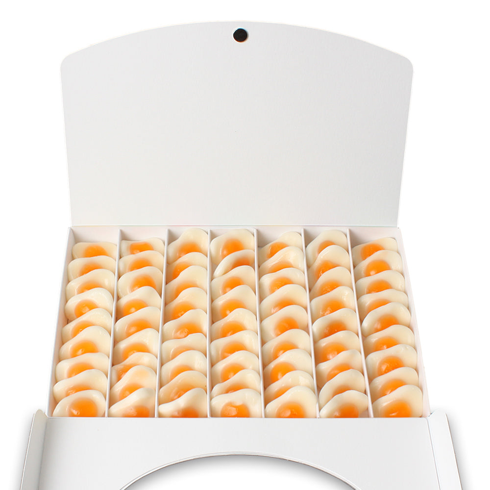 El surtido de chuches en forma de huevito de esta caja con mensaje es ideal para dar apoyo a esa persona especial, que necesita un empujoncito y mucha suerte para llevar a cabo sus proyectos y cumplir sus sueños ¡Puedes incluir en la caja una dedicatoria personalizada!