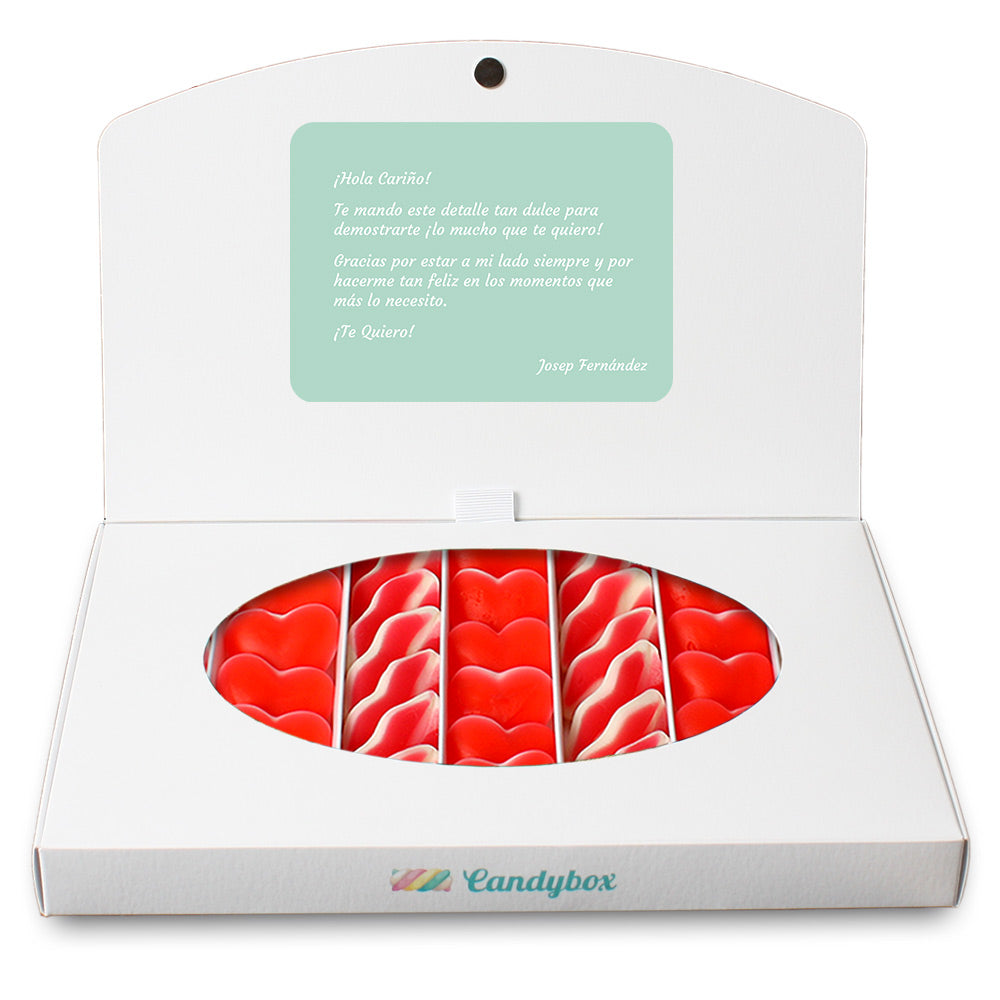 Besos, cariño, mimitos... ¿A quién no le gusta sentirse querido? Con la candybox Mimos queremos que nunca te falten besos ni muestras de amor porque con ella tendrás mimos de azúcar a borbotones. Una caja de chuches que podrás personalizar con una dedicatoria en el interior es un regalo perfecto para ocasiones especiales. Convierte un bonito día en un día perfecto con Candybox.