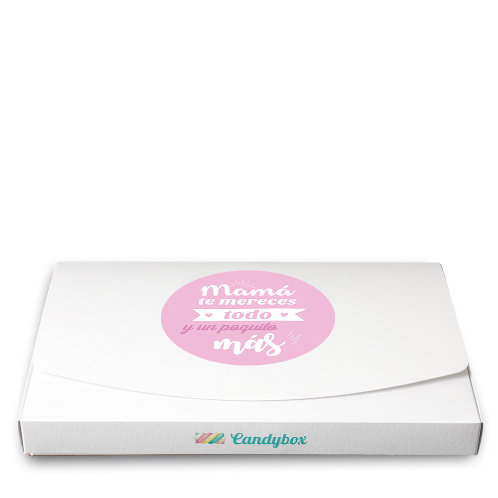 Mamá sólo hay una y la tuya es la mejor ¿verdad? Hazle saber a tu madre que la quieres regalándole esta caja de chuches de azúcar. Está surtida de más de 500 gramos de golosinas muy variadas, para todos los gustos. Para completar el detalle ¿qué te parece escribir una dedicatoria personalizada? Seguro que se sentirá ¡la mamá más especial del mundo!