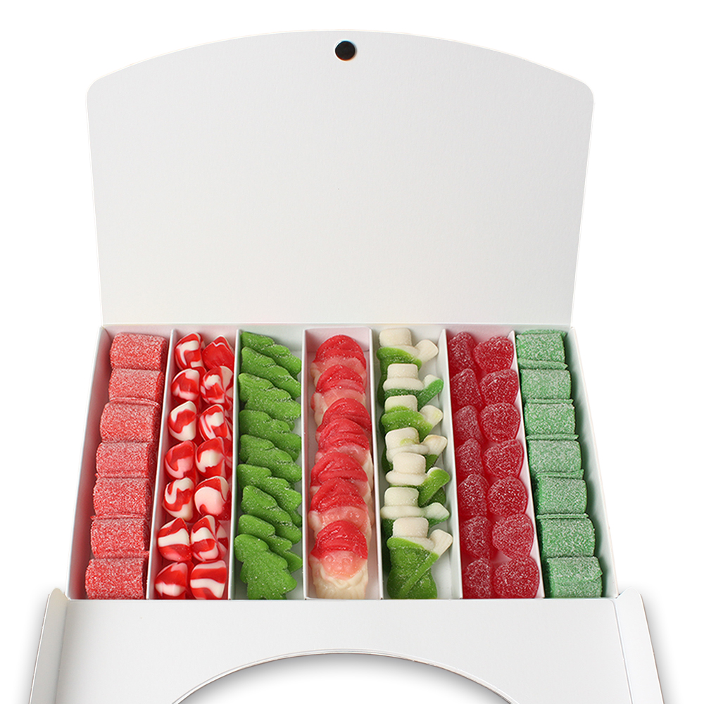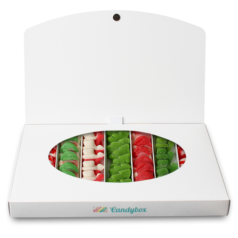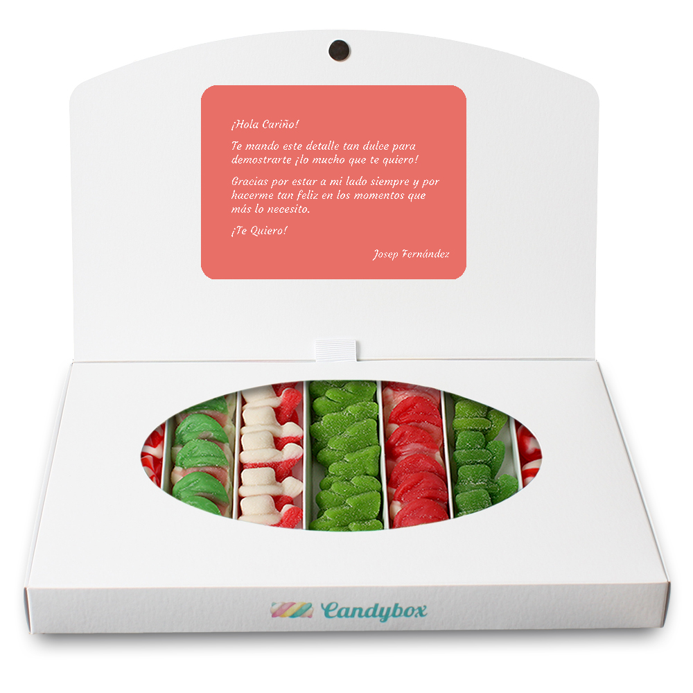 Desitja un Bon Nadal i Feliç Any Nou 2019 als teus amb aquesta caixa de llaminadures verdes i vermelles, amb colors al més pur estil nadalenc. Una caixa ben generosa que compta amb 69 llaminadures al seu interior, la quantitat adequada perquè fins als més golafres quedin satisfets. A més, pots incloure un missatge personalitzat amb els teus millors desitjos per al nou any que està a punt d'arribar.