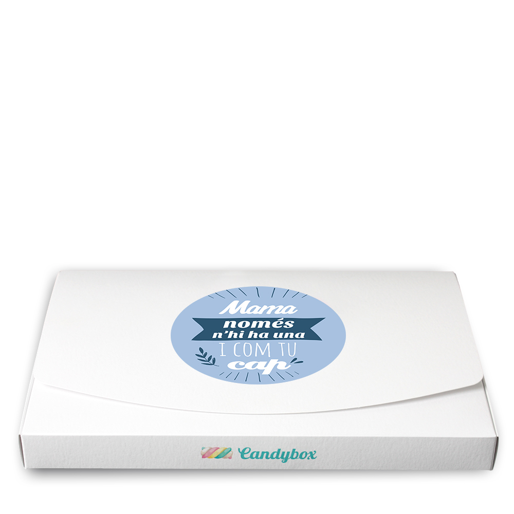 Ni la del teu amic, ni la de la teva veïna, ni la de la teva profe li arriba a la sola de les sabates a la mama. Perquè tots sabem que les nostres mares són úniques, aquesta Candybox amb el missatge de "Mama només n'hi ha una i com tu, cap!" és el regal perfecte per a aquest dia especial de la mare. Celebra el dia de la mare, el seu aniversari, etc. amb un regal original a domicili com aquesta capsa de llaminadures de cors de sucre i sorprèn-la amb un missatge personalitzat al seu interior.