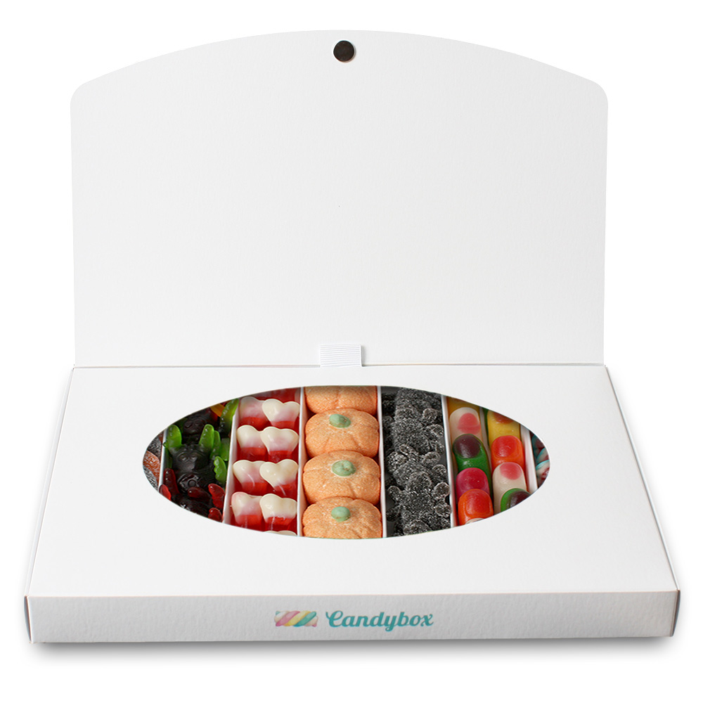 Esta caja de chuches de Halloween es el detalle ideal para una persona amante de las golosinas y que le encante la festividad más terrorífica del año. Las chuches tienen forma de calabaza, de dedo, de cerebro y de otros motivos de miedo. Seguro que podréis compartirlas mientras veis pelis de terror o jugáis a la güija. Además puedes redactar un mensaje personalizado que incluiremos dentro de la Candybox para que el detalle sea aún más personalizado ¡Acertarás sí o sí!
